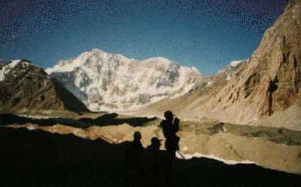 юг в Китай круто падает снежно-ледовый склон. В районе ледника