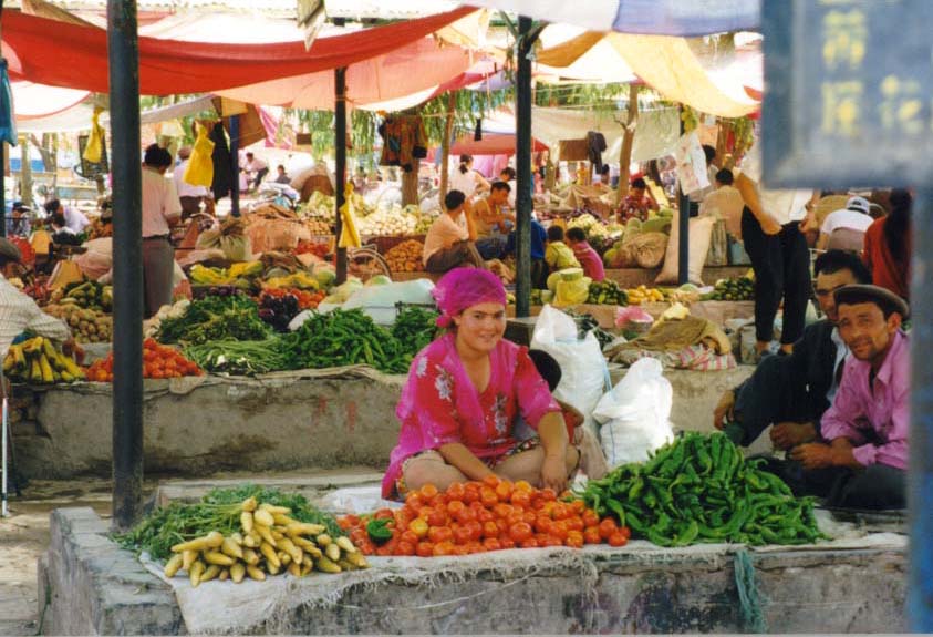 девушек. В самом Кашгаре очень плотное движение машин, велосипедов и