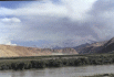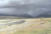 спиной возвышается Чакрагиль, а прямо у дороги залитая водой долина с серыми