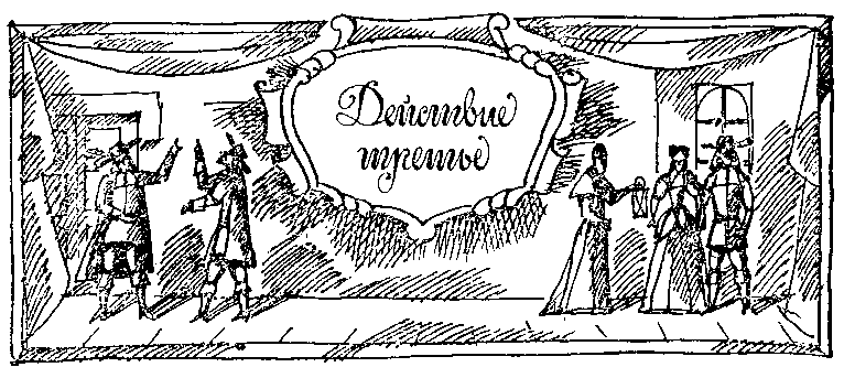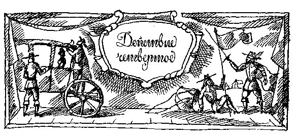 Шум голосов за дверью; затем врывается кавалер.