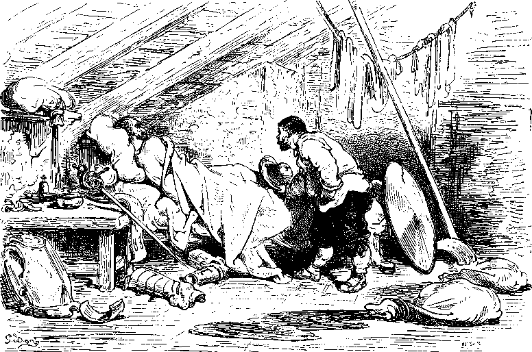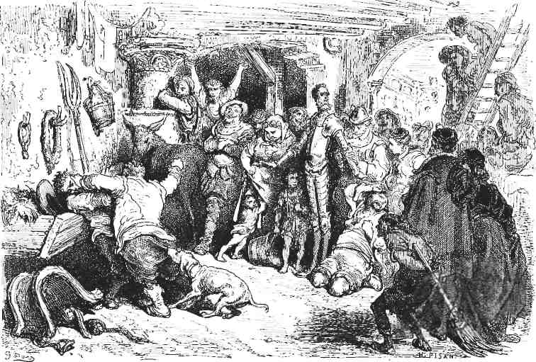 Пансе на постоялом дворе, принятом рыцарем, к несчастью его, за замок