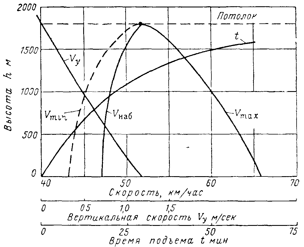 вертикальная скорость у него около 16 м/сек, угол подъема -- около