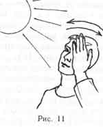 очков. Впадины ладоней при этом сами собой расположатся над глазами. Следите
