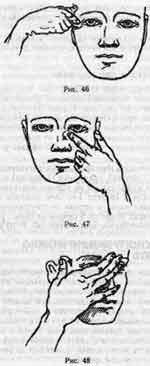 сильно прижимают их к лицу. Помните: никакого напряжения в руках! Кисти рук