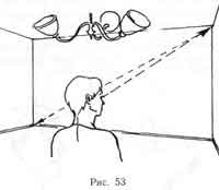 переводить взгляд из правого верхнего угла комнаты в левый нижний, из левого