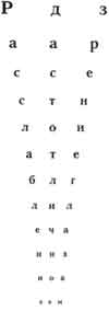 Сядьте теперь против таблицы на таком расстоянии, чтобы верхняя строчка была