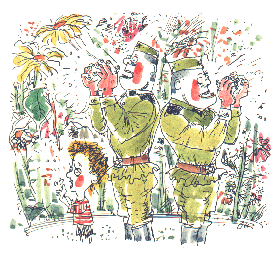 Солдаты (хором). Для цветов вашим друзьям. Возьмите!