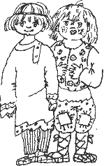 девочка с тряпичной куклой.