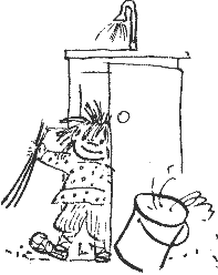 -- В трубе течет, -- важно ответил Кузька. -- Сначала удивилась, когда