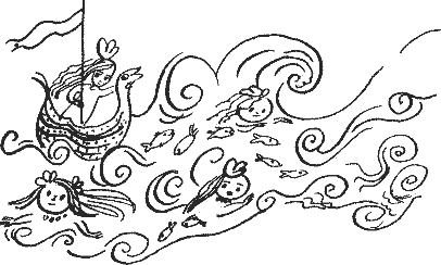 за ними. Поднималось солнце. Корыто уткнулось в берег, а русалки закричали: