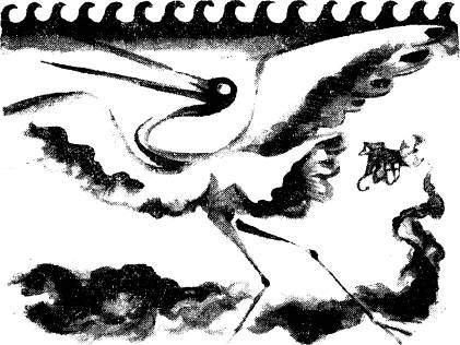 - Ну, полетим! Ого-го, сколько пассажиров! Садитесь, садитесь! Аист