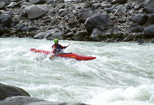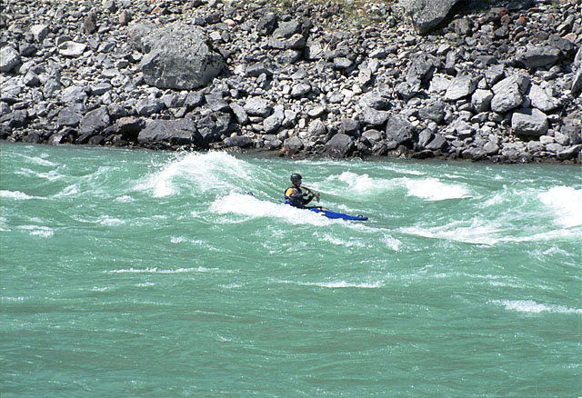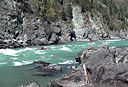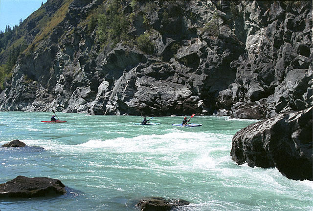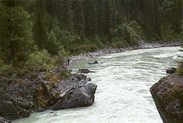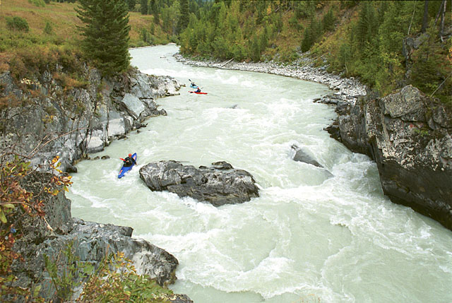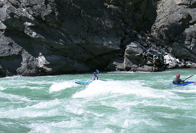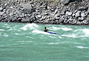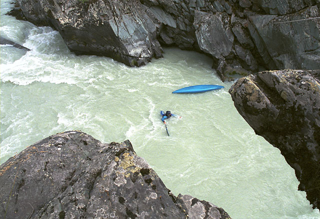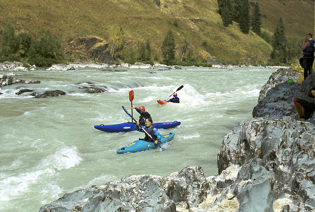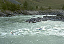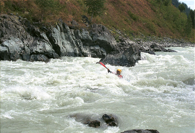 Пор. Щеки 3. Страховка эвакуирует аварийный каяк после порога.