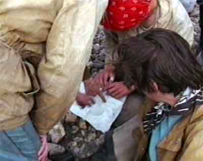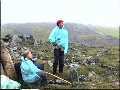 берегу в травке. Дежурят Коля с Олей, на ужин пюре и халва. Очень холодно, все довольно