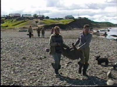 результате матросы шли по берегу, Серый плыл один, а Миша вел байдарку. Матросов