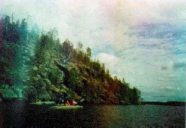 ле чего лодка со скрипом перетаскивалась через тот камень, на кото-