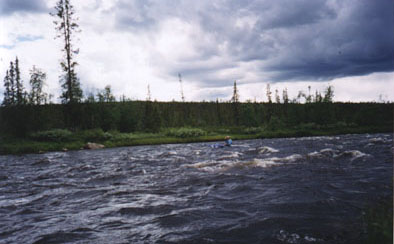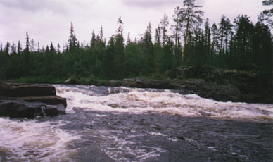 (2) Значительная часть маршрута проходит по территории Лапландского заповедника, где запрещены охота, ловля рыбы, разведение костров и т.д. Можно немного изменить маршрут, чтобы не заходить в заповедник, для этого нужно волок к Пече и сплав по ее верховья на сплав по Коньей (ее притоку). Количество ходовых дней при этом значительно сократиться, и свободное время можно потратить на охоту, рыбную ловлю, сбор грибов и ягод, разведение костров и т.д. 8-) Отчет 1997 года о таком варианте маршрута есть в библиотеке московского турклуба.