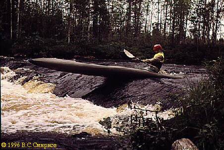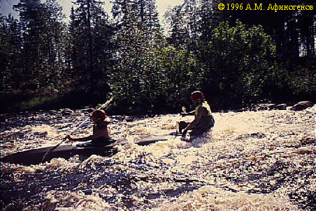 Порог No32 (Iб, 100 м). Сходу. Через 5 мин -- мелковатый перекат и через 100--150 м после него --