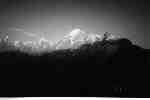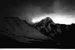 мрачновато - заснеженные горы, одной стороной отражающие лунный