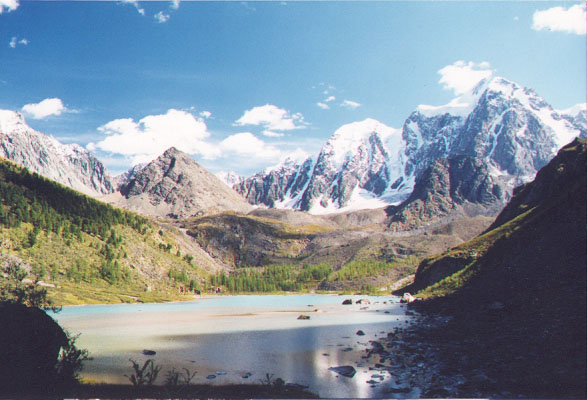2. Алтай - горная страна на территории юга Западной Сибири, Монголии и Китая. Состоит из хребтов, образующих водораздел Оби, Иртыша, Енисея и рек бессточной области Центральной Азии. Длина свыше 2000км. Разделяется на собственно Алтай, Гобийский Алтай и Монгольский Алтай. Наиболее высокие хребты на территории России - Катунский, Северный и Южный Чуйские достигают высоты 3000-4000м. Самая высокая точка Горного Алтая - г.Белуха (4506м), с которой берет свое начало р.Катунь. Для Горного Алтая типичны также хребты и массивы высотой 1500-2000 со слаборасчлененными гребнями, разделенные межгорными коловинами, носящими названия степей - Чуйская степь, Курайская и др.