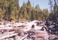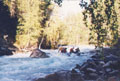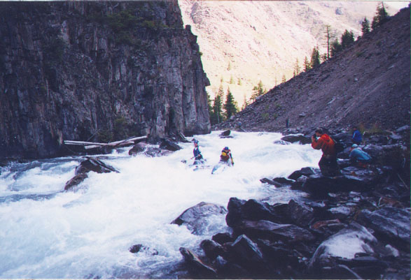 94. Чемальская труба. Начинается за правым поворотом перед устьем р.Чемал. Сужение в скальных стенках высотой до 8-10м, на входе слив 0,8м с бочкой 0,8м, далее мощные "поганки".