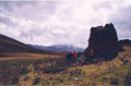 На перевал нас привезли в 14-00. При подъезде к перевалу седловина не видна почти до самого последнего момента, т.к. находится "за поворотом" - за отрогом хребта. У подножия отрога расположена хижина пастуха. Дорога проходит мимо нее и поворачивает налево, поднимаясь на седловину перевала. Седловина широкая, поросшая травой. Дров и воды нет. Слева находится скальный останец квадратной формы, напоминающий небольшой замок с башнями. Справа на вершине хребта также скальные выходы.