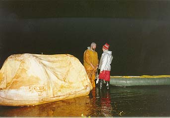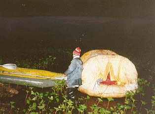 Не очень радостное занятие- вылезать в три часа ночи из т¤плого и сухого ПСНа под дождь. Но пришлось. Кирюше пришлось рассказать нам, куда надо грести. Течения в этом месте почти не было.