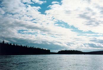 Оказалось, что идти на моторке вверх по мелкой перекатистой реке - это весьма увлекательное занятие. Вдобавок на лодке, где были Васи, мотор на каждом перекате глох, не охлаждался и дымил. Его хозяину Ване приходилось постоянно поливать мотор водой. Выглядело это просто замечательно, а за лодкой струился густой пар, создавая видимость стоящего на корме самовара. Тем временем пришла гроза. На лодке от не¤ спрятаться некуда - пришлось вымокнуть до основания и зам¤рзнуть. Остановились погреться у смотрителя ЛЭП Платона - примерно на полпути. Там согрелись, попили чаю, получили в подарок новые портянки и пошли дальше. В 21.30 пришли в Орловку. Там в нормальном состоянии сохранился лишь одна изба. Там мы и остановились. Мужики, подвозившие нас, перед отъездом сварили ухи, а щугорский рыбинспектор Миша рассказал, на какие блесны лучше ид¤т хариус, а также то, что на Щугоре бродит уйма всяких инспекторов и вертол¤тами туда забрасывают множество страшных опер групп.